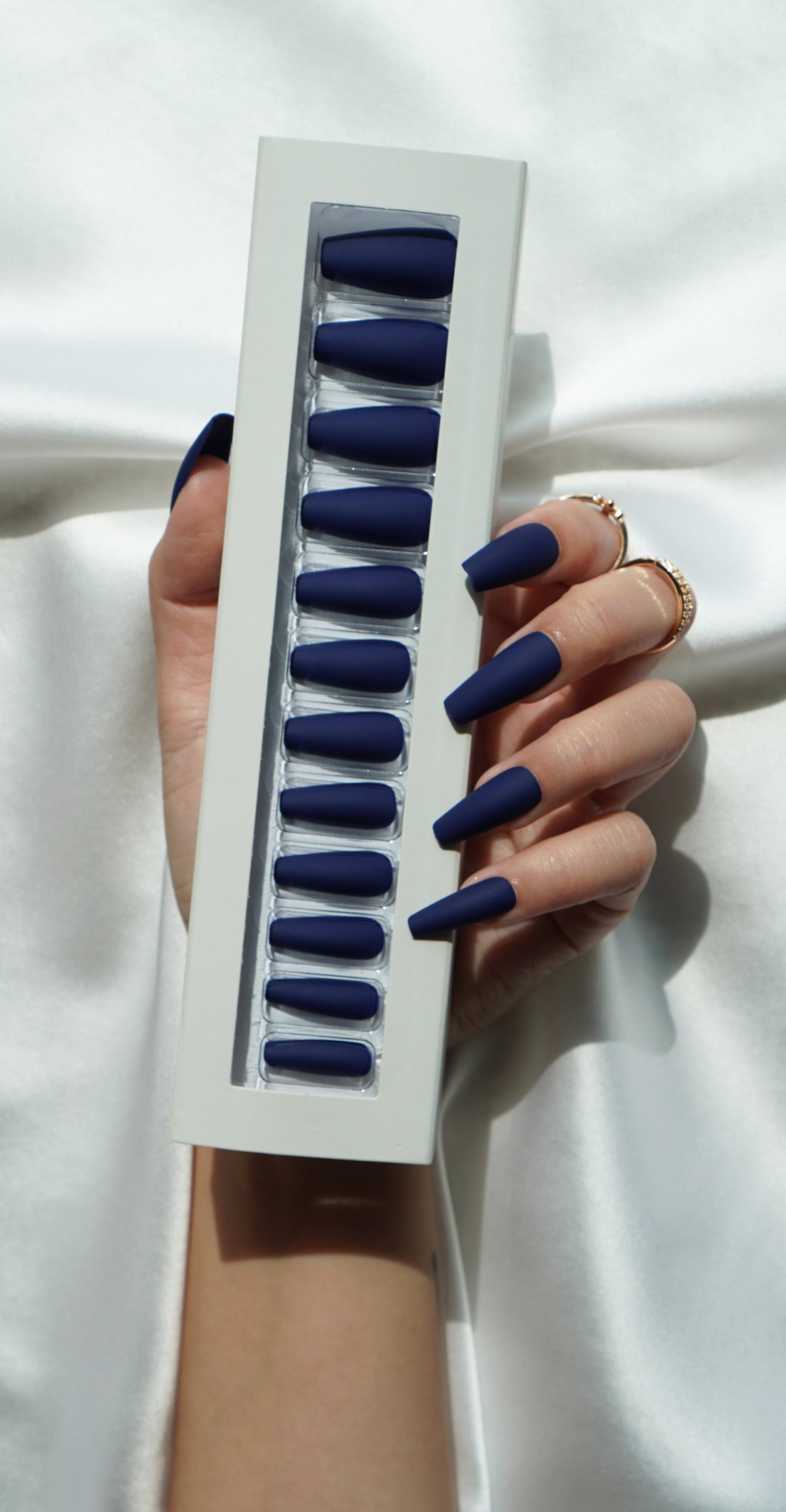 Medium Coffin Matte Nails in Dark Blue