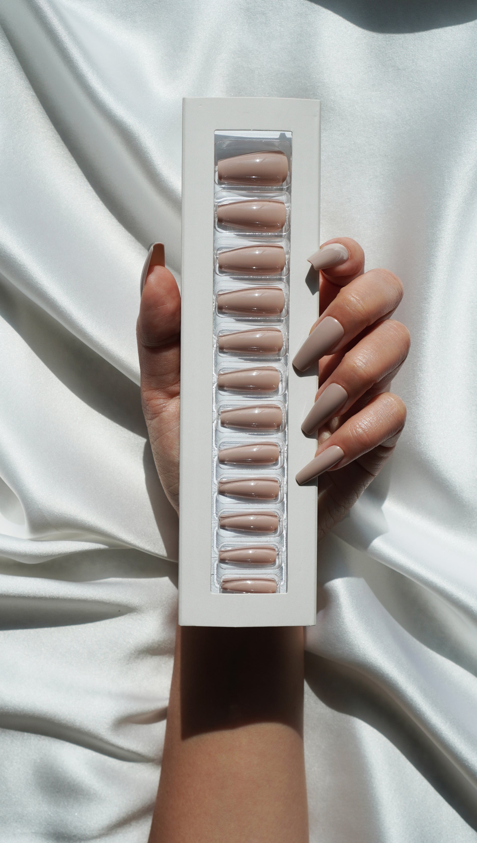Medium Coffin Glossy Nails in Nude Beige